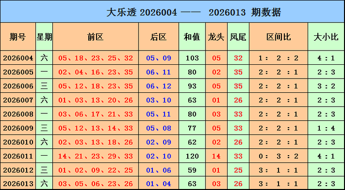 大乐透上期开奖号码回顾:前区03 05 06 23 26,后区01 04