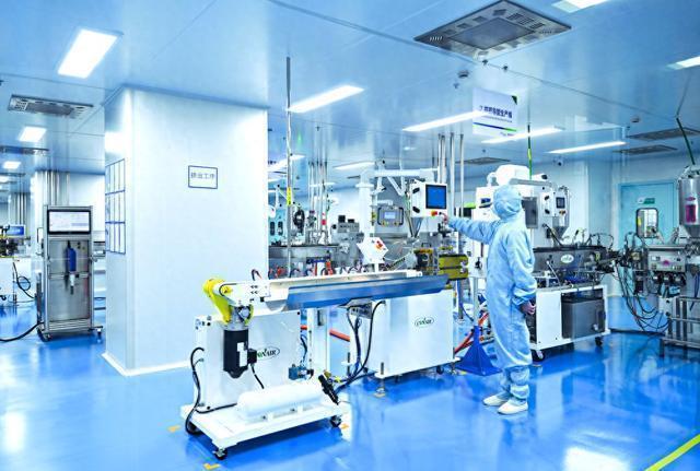 在河北康誉医疗器械有限公司生产车间交易鑫优配,工作人员在智能化生产线上进行医用产品生产。